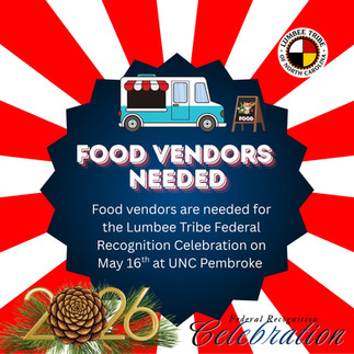 Food vendors are needed for the Lumbee Tribe Federal Recognition Celebration on May 16, 2026 at UNC Pembroke.