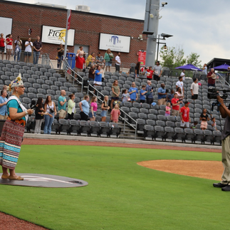 Thank you to everyone who came out to Lumbee Night with the Fayetteville Woodpeckers Baseball Team on Wednesday. We had lots of fun! It rained just a few minutes, but then it turned out to be a beautiful night. Lumbee Tribal Chairman John L. Lowery threw out the first pitch at the game and Senior Ms. Lumbee, Ms. Sharon McNeill Burnette, sang the National Anthem. Thank you to all of our artisans who came out to demonstrate their art and share about Lumbee for guest at the game.