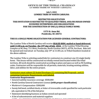 Restricted Solicitation for Construction of One (1) Single Family Home--Pembroke, NCdscott839Jul 5, 20220 min readCaleb Jacobs RFP.pdfDownload PDF • 303KB