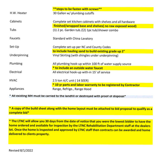 Restricted Solicitation for Purchase Thirty (30) New Single-Wide Mobile Homesdscott839Aug 22, 20220 min readMHR RFP (30).pdfDownload PDF • 818KBMHR Sepc Sheet.pdfDownload PDF • 626KB